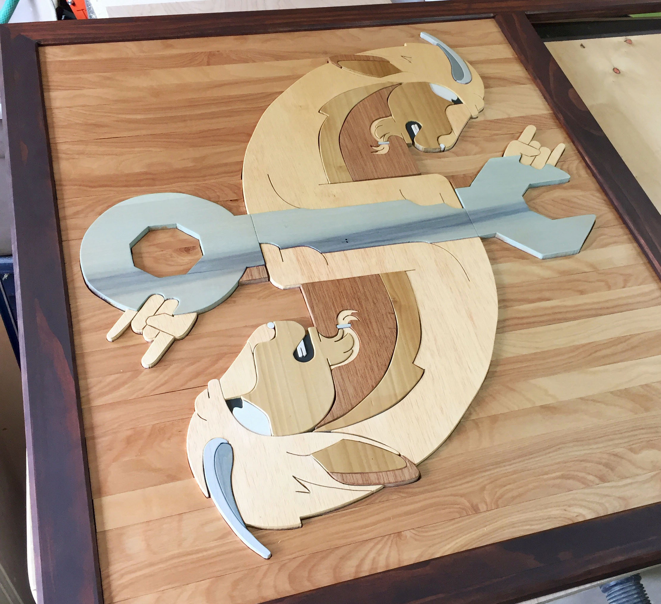 Most of my creations are less functional and more decorative. I specialize in creating mosaics using wood, and am always experimenting. (This is the main focus of my woodworking recently.)