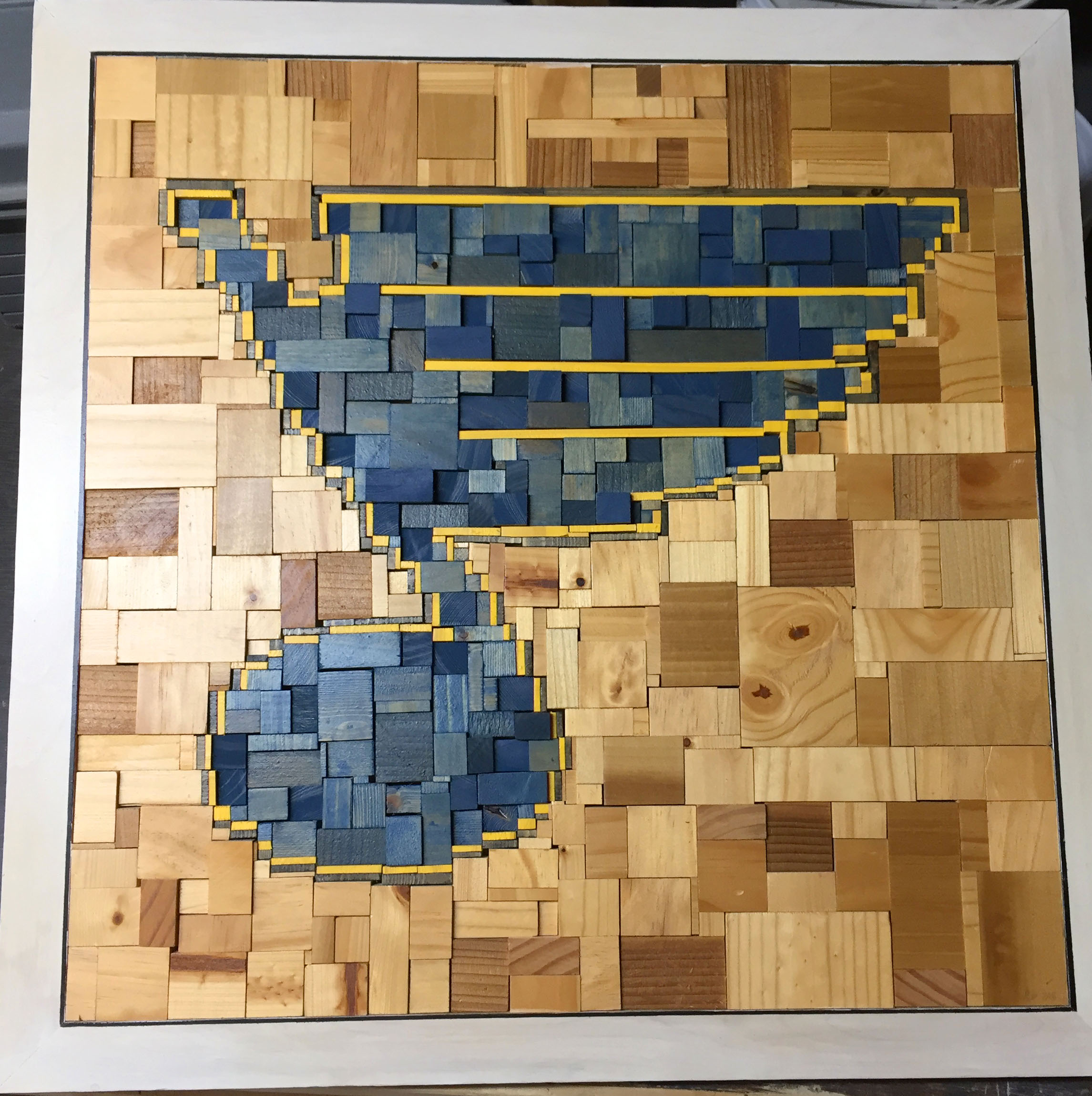Most of my creations are less functional and more decorative. I specialize in creating mosaics using wood, and am always experimenting. (This is the main focus of my woodworking recently.)